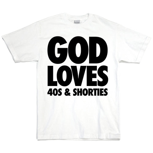 40s n Shorties ; God Loves tshirt , wht