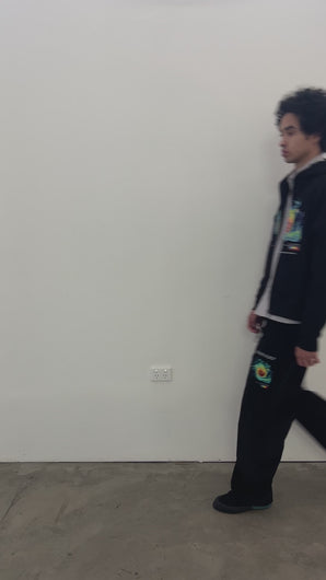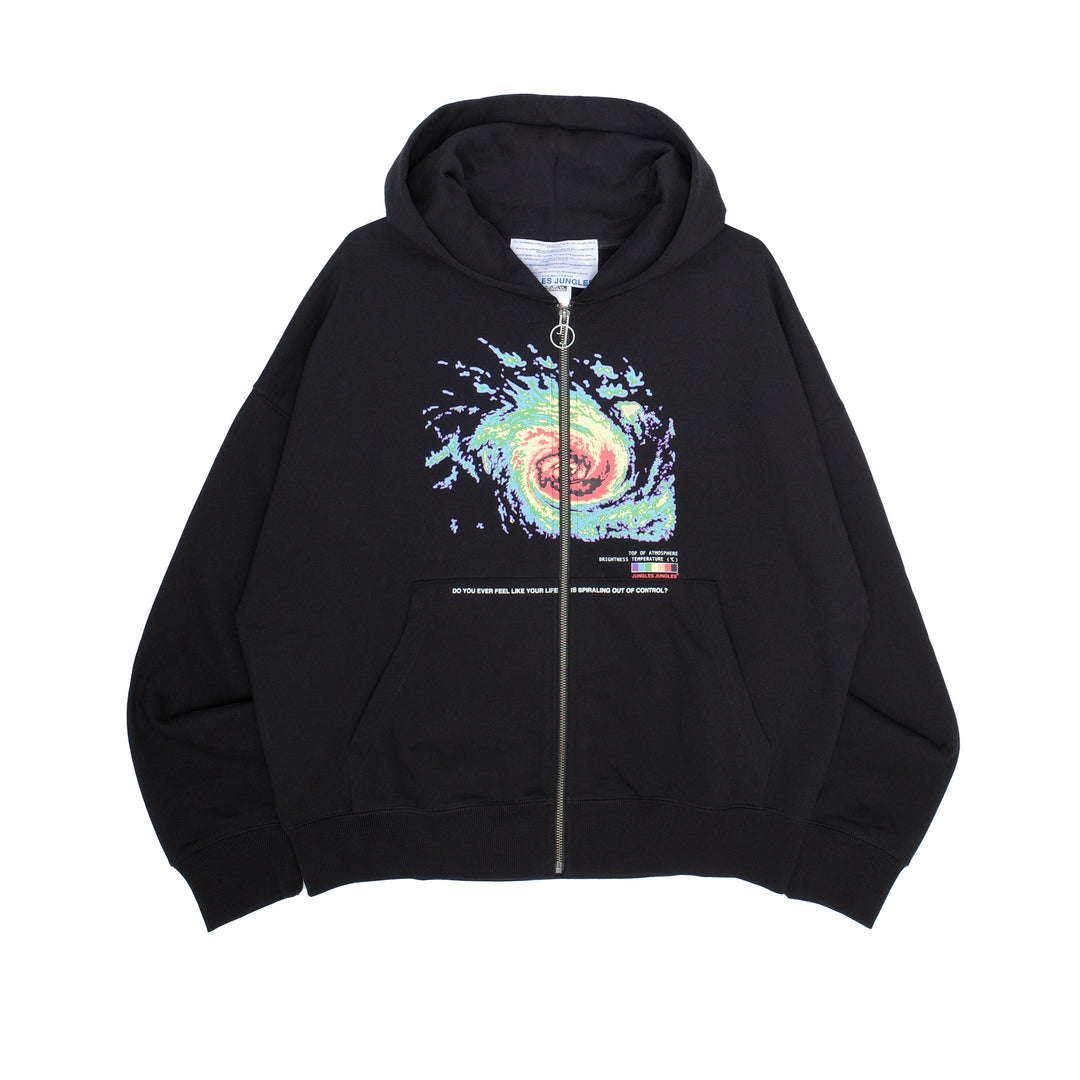 Zip through hoodie with custom “Jungles Jungles” zipper pull.