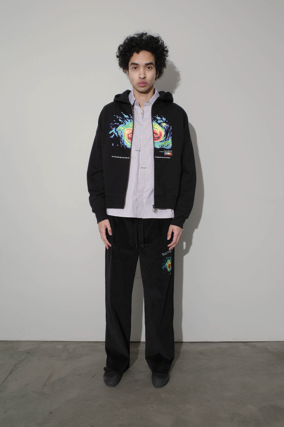 Iconic ‘Spiraling’ graphic printed on front.