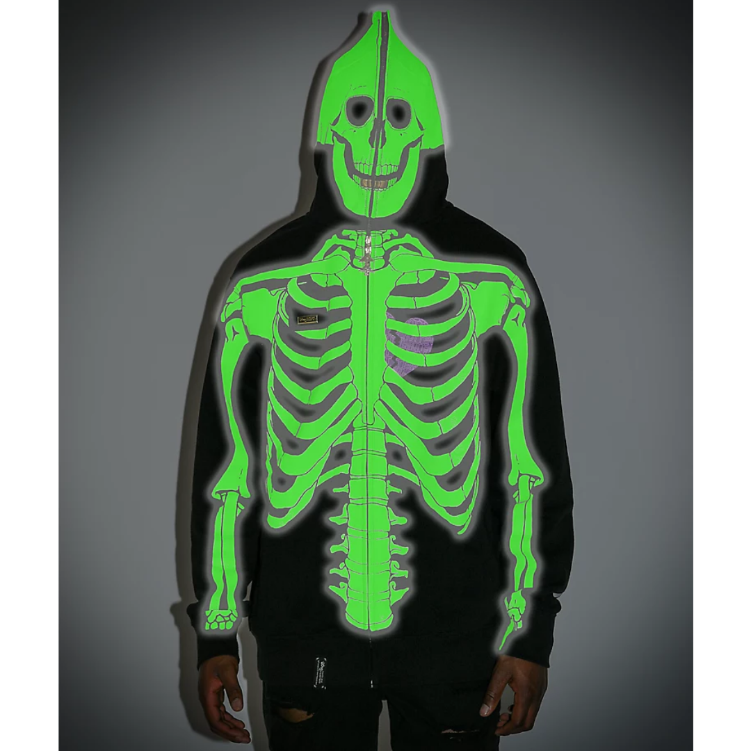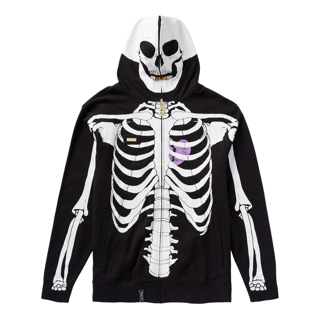 Lend a skeletal element to your layered looks with the black zip hoodie from LRG x Dead Serious. This jacket comes with fuzzy fleece-lined interiors and a fully-zipped hood, perfect for keeping warm and cozy wherever you are, while screen-printed graphics of a skeletal torso, arms, and skull sit at their respective locations on the hoodie, lending the look a dash of fully-decomposed detail.