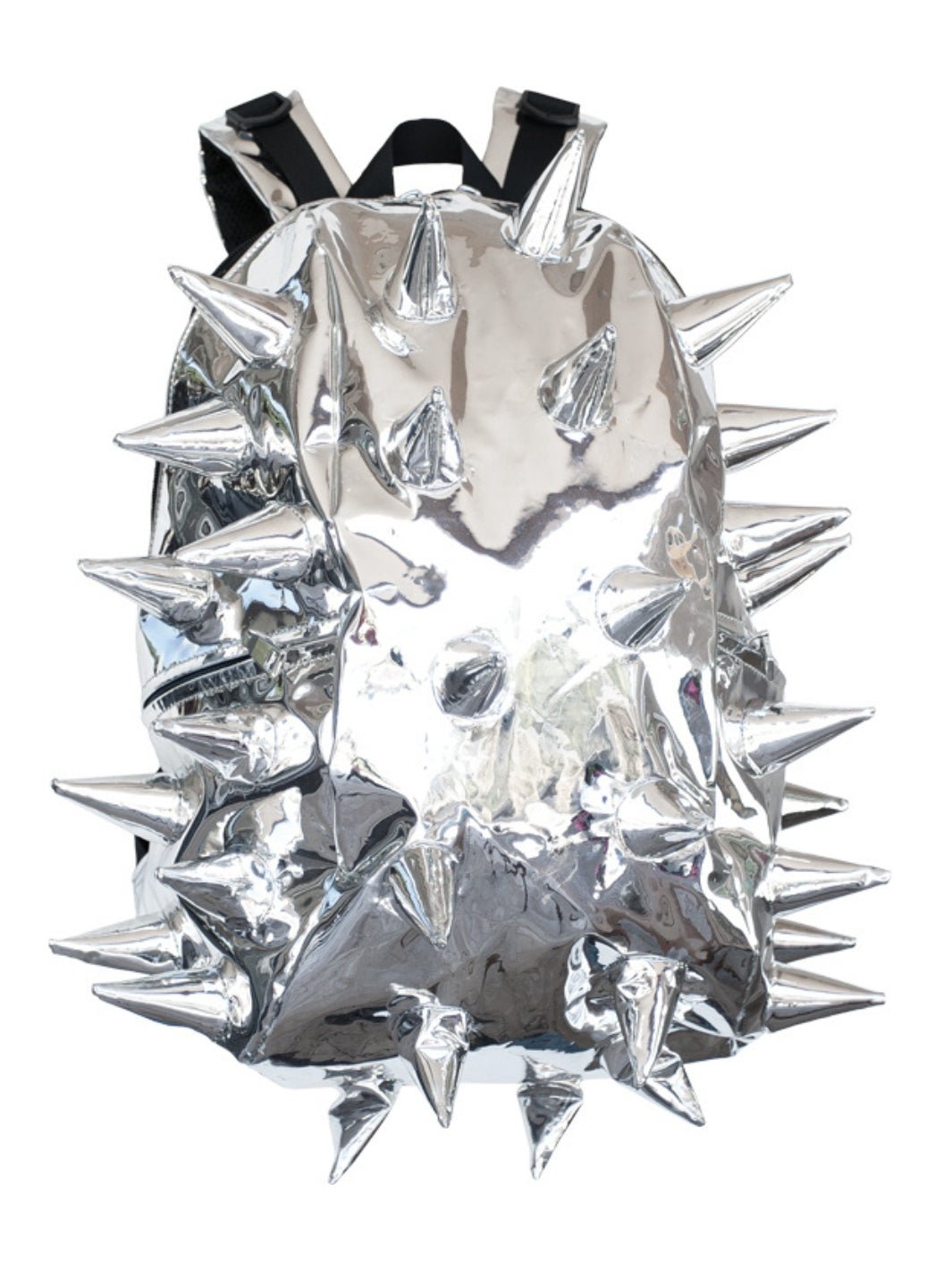 Embrace the electrifying allure of liquid metal spikes with our Thunderchrome silver backpack. This isn't just a silver backpack, it's a statement piece forged from molten chrome, daring you to defy expectations.