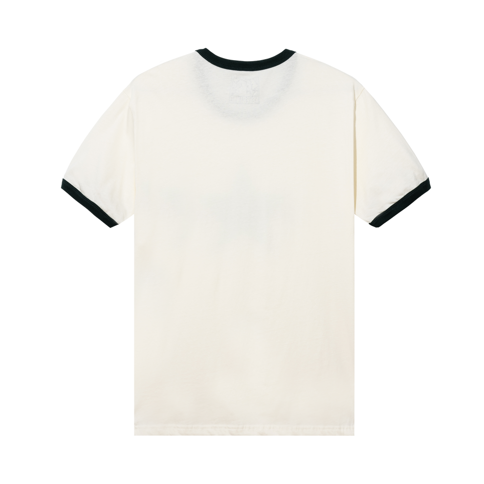 Vintage style ringer tee . Screen printed graphic.