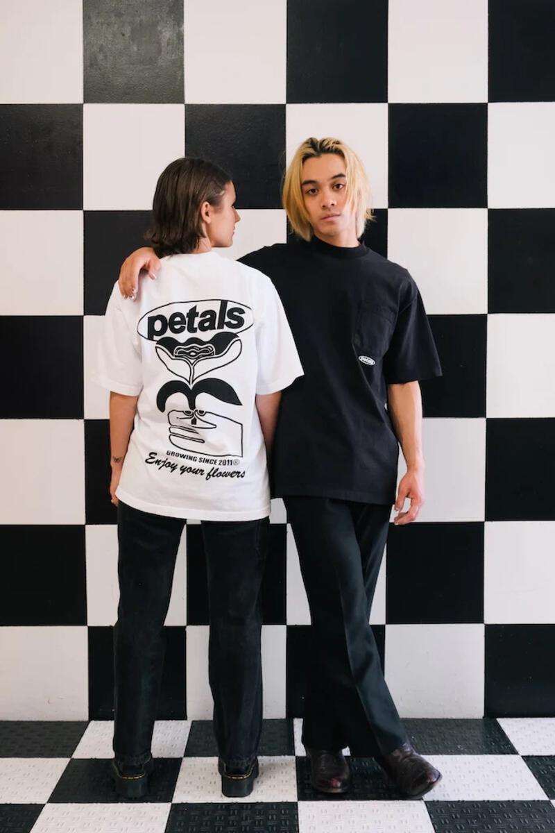 Celebrating their 11th birthday with this garment dyed premium tee that features a Petals logo printed on the front left chest and a simplistic floral design on the back. This tee is washed in natural enzymes giving a broken-in feel, well-made construction with a higher neck line. Enjoy your flowers! 100% Jersey Cotton 6.5oz Shrink-free Unisex sizing . Models are wearing size Small (female) and Medium (male)