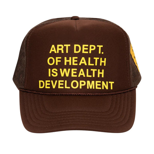 Petals and Peacocks ; Health is Wealth Trucker hat , brown
