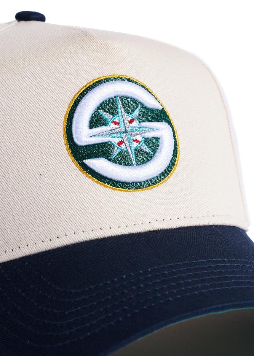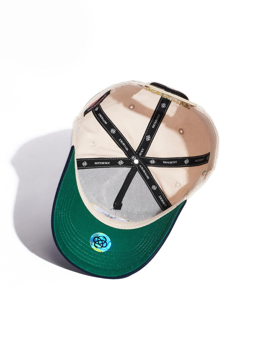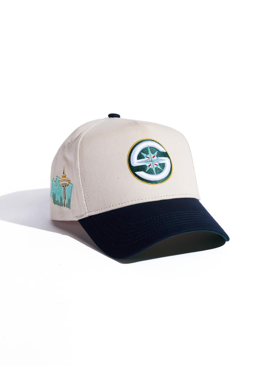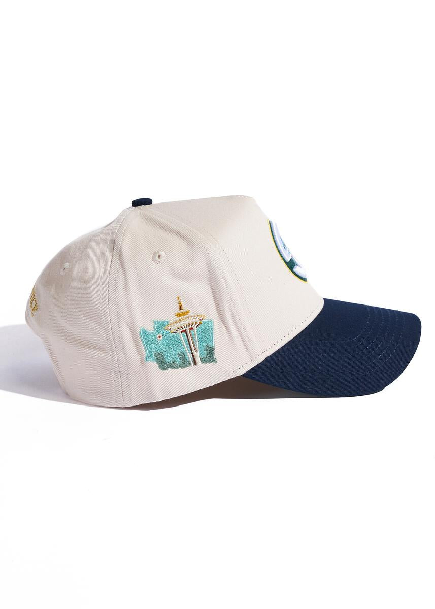 Pre-curved Brim . Fully adjustable double row snapback. 3d front embroidery. Seattle space needle side embroidery. Gold thread "Reference" embroidery arched over back of hat . Green underbrim