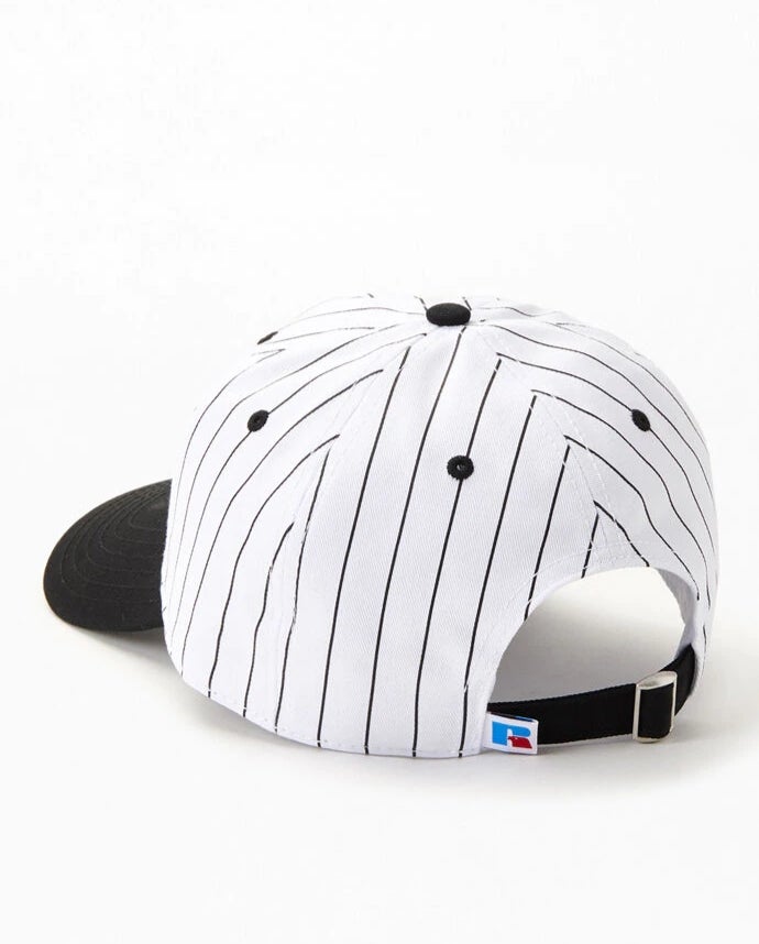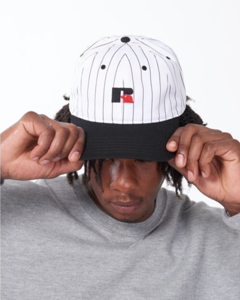 Put a cap on your casual style with the new Russell Striped Strapback Dad Hat. This go-to accessory has stripes all over, an embroidered Russell logo on the front, and an adjustable rear.