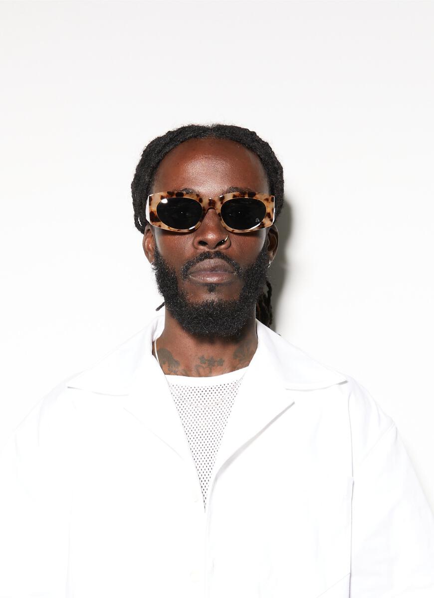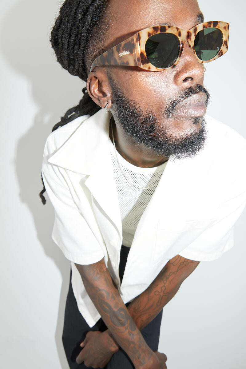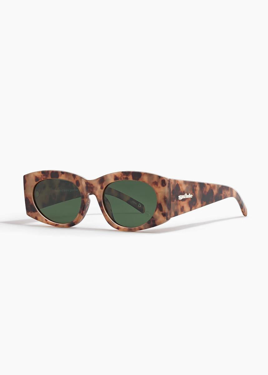 more is more with our chunky rectangular frame featuring oval lenses. custom shell inspired tortoiseshell pattern with dark green moss lenses.