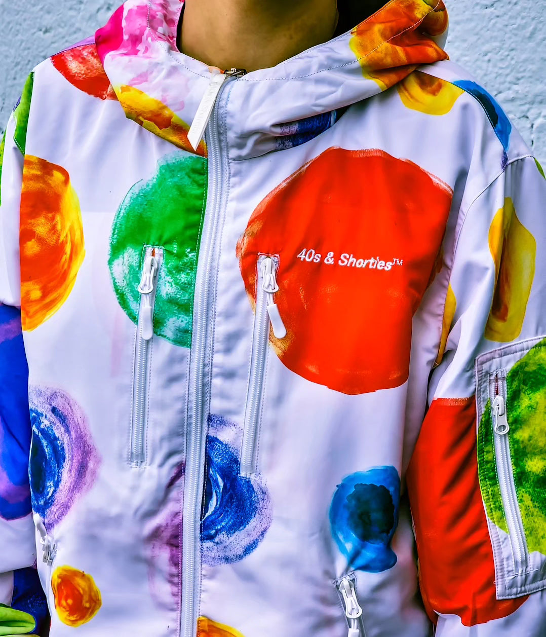100% Polyester Reversible Windbreaker Water Resistant Fabric Sublimated Body Art Woven Cuff Label .