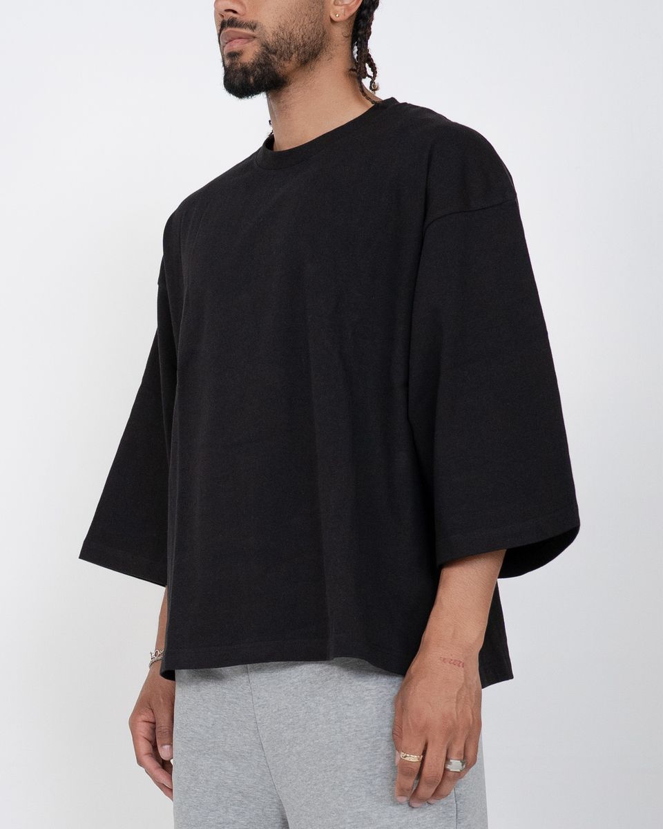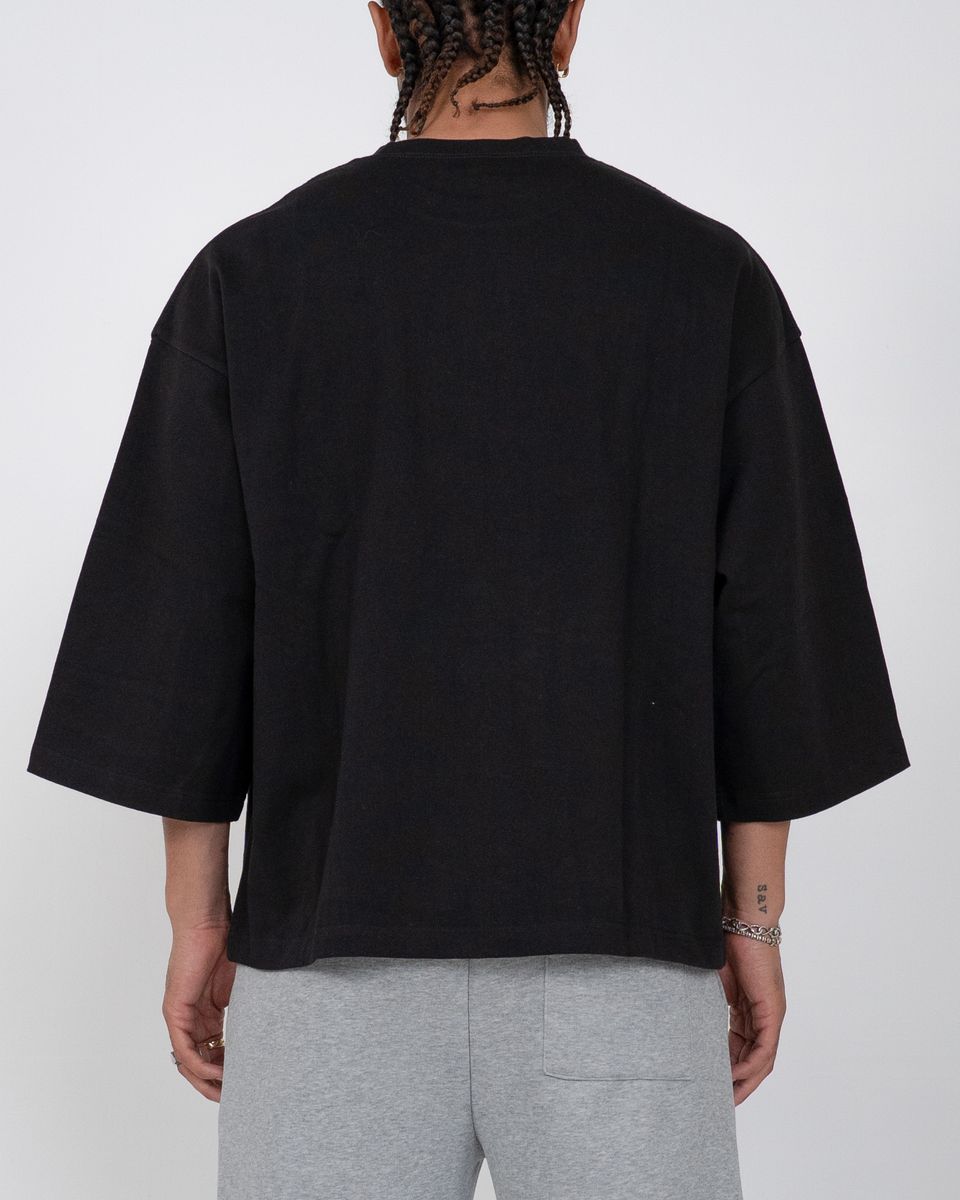 The Black Perfect Quarter Sleeve Tee is a new spin on a classic basic. This T-shirt features a boxy fit with a three quarter sleeve and cropped hem.