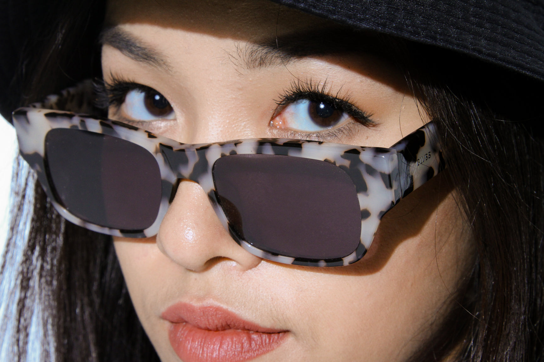 The newly designed Americana sport a sharp design and bold color ways. A thick acetate silhouette, Americana features are squared, low-nose bridge, and wide lenses. This version of Americana features smoke lenses and white tortoise temples.