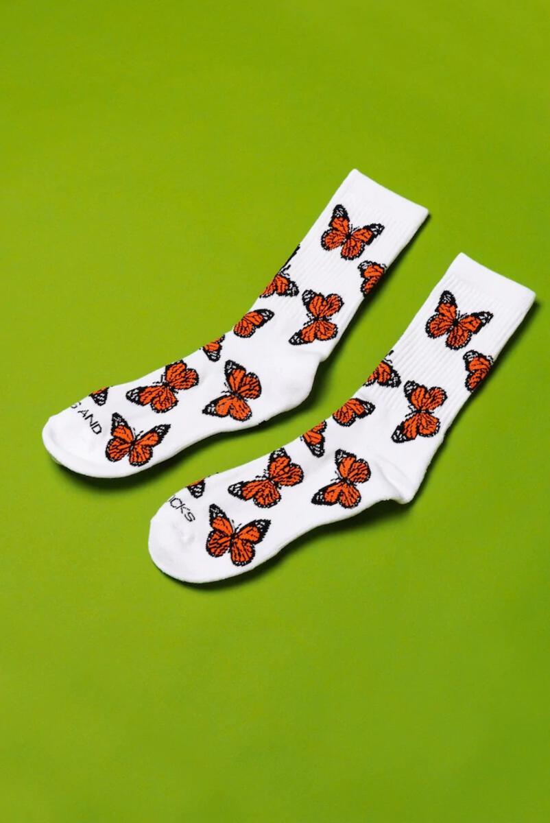 You can never have enough butterflies or crew socks. 80% Cotton 15% Polyester 5% Spandex . Unisex . One size