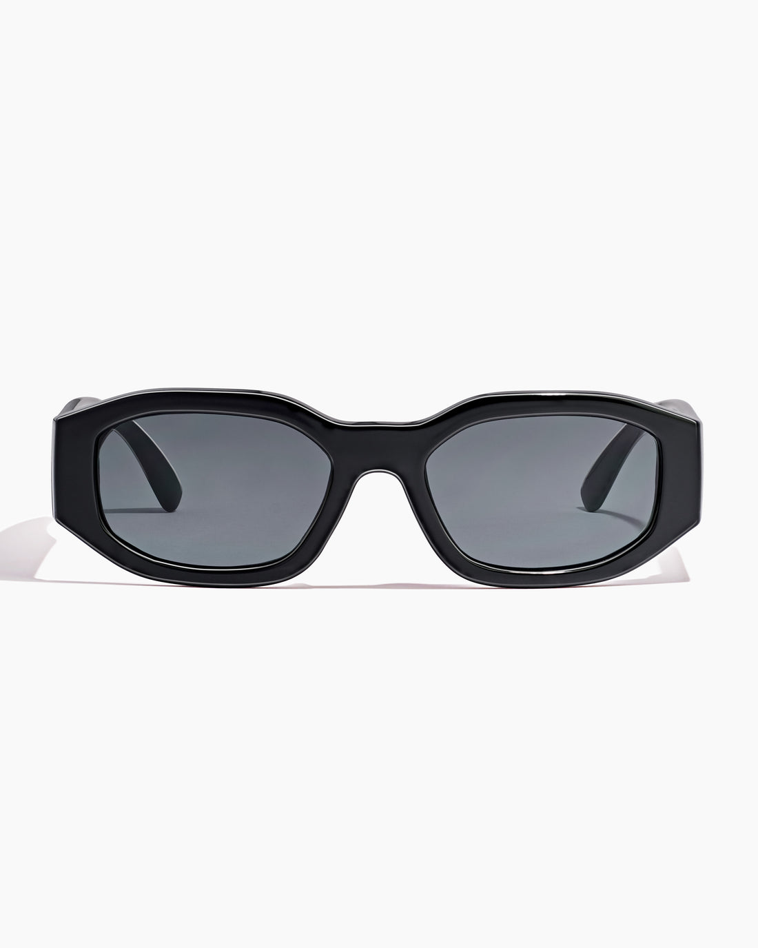 signature szade ; crafted from our signature sustainable material in a classic black on black colourway, this on-trend rectagular sunglass frame is THE cherry on top for all your fit checks.