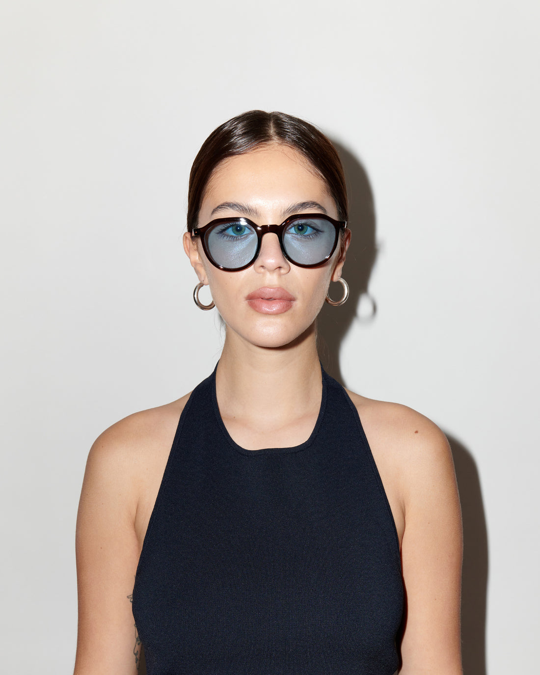 signature szade ; your circle sunglass essential with an edge, meet highway. a round sunglass frame that will flatter any face. with a fresh take on a heritage silhouette, you can't go wrong with highway in super versatile dark brown colourway with on trend tinted lenses.