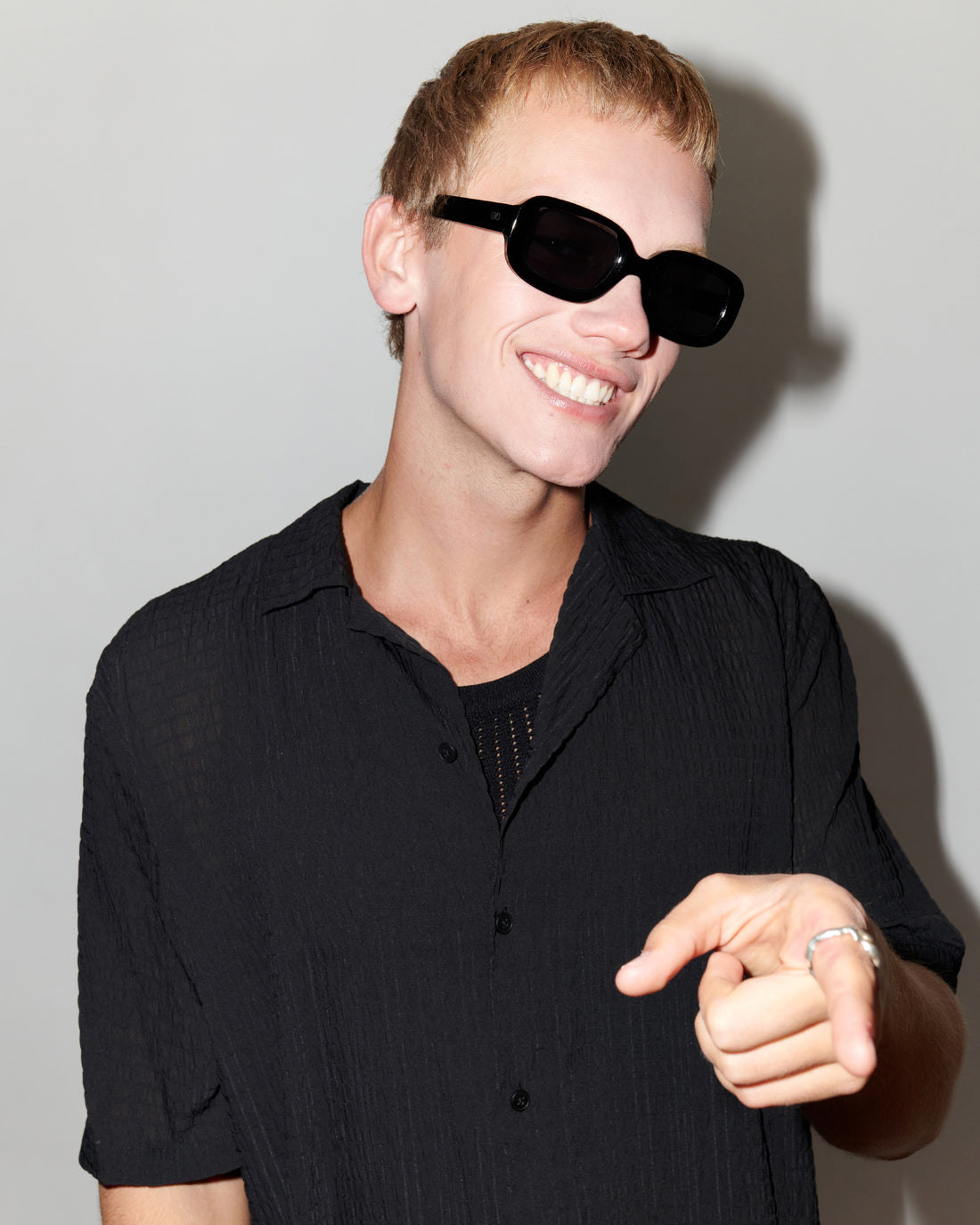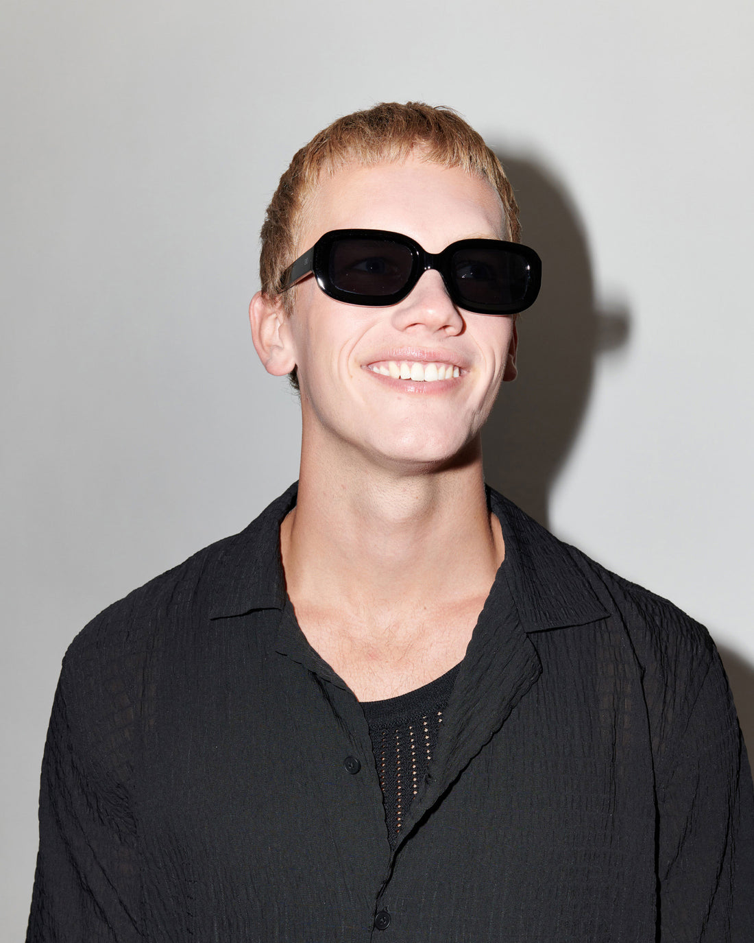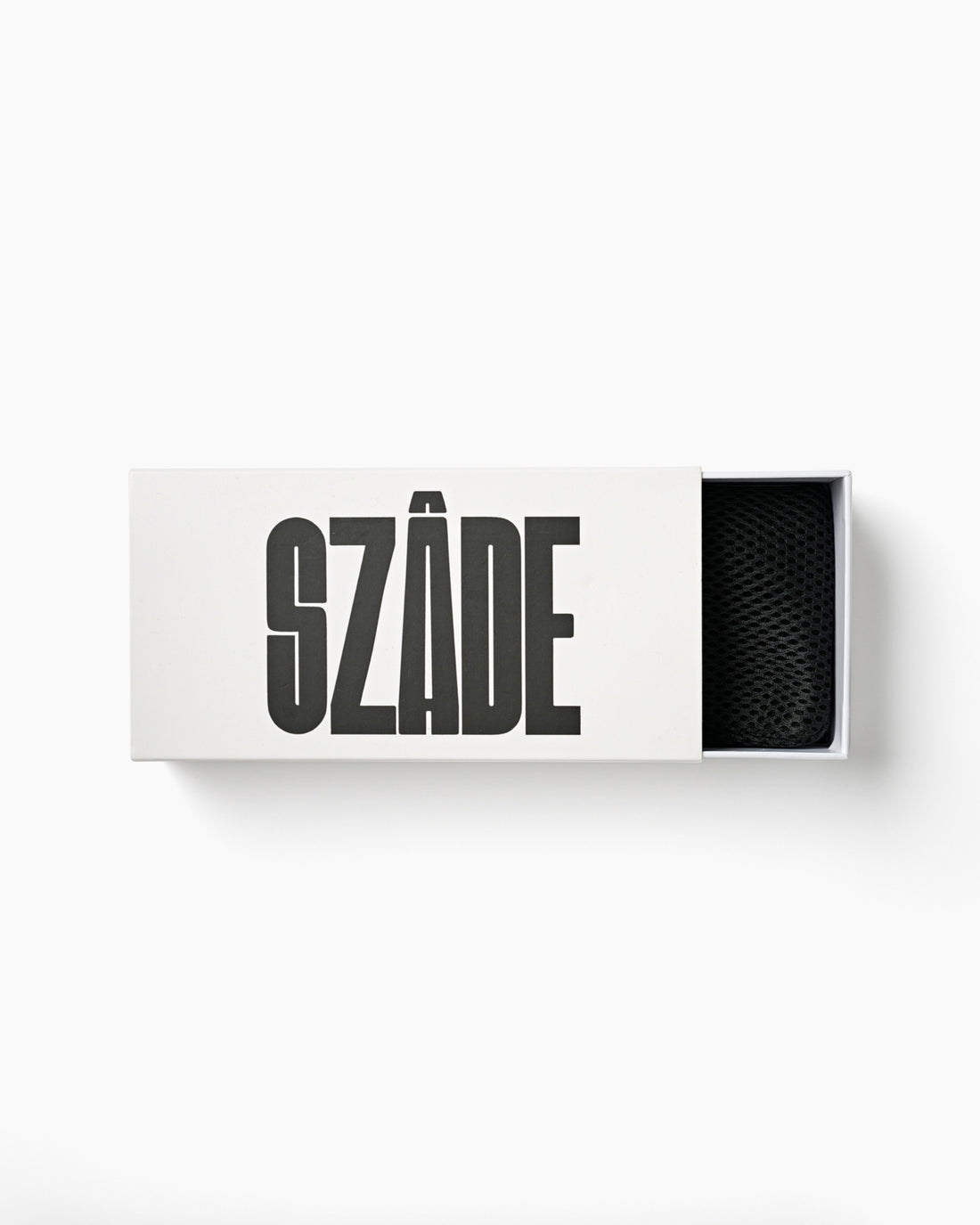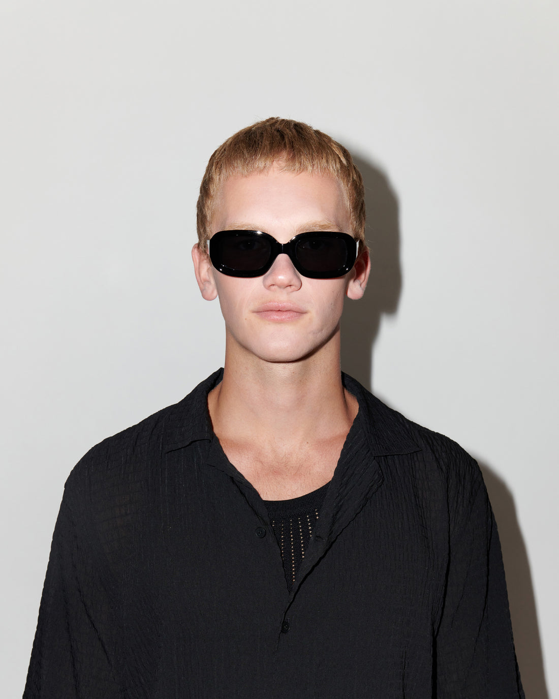 signature szade ; more chunky equals more funky, meet our soho frame. part oval sunglass, part rectangular sunglass, this circa 60's vintage inspired silhouette is the perfect statement piece to level up your look. redefine your personal style with this bold frame in a clean black on black colourway.